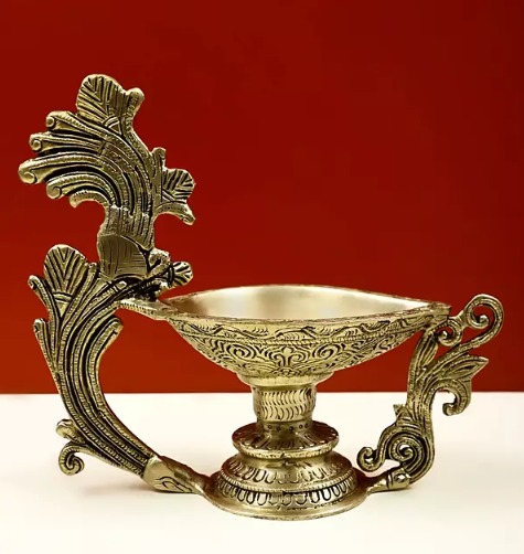 Brass Diya with Decorative Handle