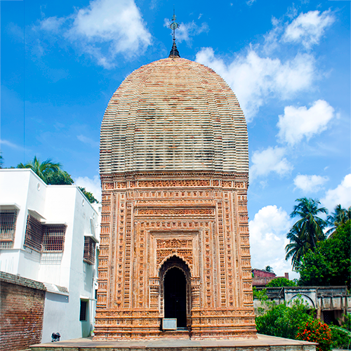 This beautiful Shiva temple is one of the many temples within the famous Rajbari Complex of Kalna. The site is about 2km from the Kalna Railway Station. The Pratapeshwar temple still echoes the deep devotion and love of a wife for her late husband. As per locals lores, Maharaja Pratap Chand died at an early age in 1821. Fourteen years later, a sannyasi appeared and claimed to be Raja Pratap Chand, who hadn’t died, but fled from a lethal palace conspiracy instead. It is said that a large number of people actually believed in his story. The ‘fake King’ eventually got arrested by the colonial administration and faced judicial trials. Years later, Queen Pyari Kumari Devi erected this temple to officially dismiss the ‘Fake King’ event. The Pratapeshwar Temple is a beautiful blend of Odisha’s Deul style of architecture and Bengal’s terracotta-based temple storytelling style. Each year on the holy occasion of Shiva Ratri, thousands of people gather here to seek blessings from Mahadev.