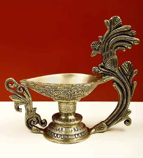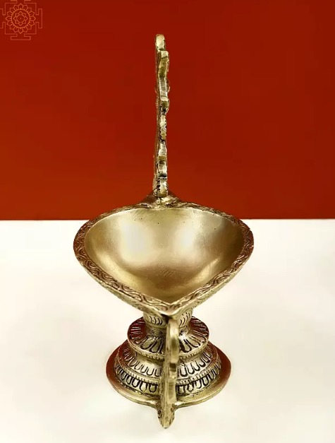 Brass Diya with Decorative Handle
