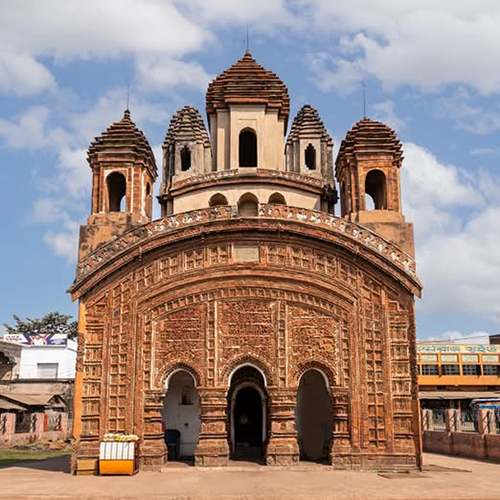 The RadhaBinod temple is situated in the Joydeb Kenduli village, on the banks of the River Ajay, about 28-30km from Bolpur Shantiniketan. As per popular lore, Shri Krishna himself came to write verses on behalf of Poet Joydeb. It is said that he redefined the portrayal of divine love in Indian literature and influenced the Bhakti movement immensely. The temple was built (in 1683 CE) by the Queen of Burdwan, Braja Kishori, in the fond memory of Poet Joydeb and his beloved wife, Padmavati, in his karmabhumi, Kenduli. Countless people gather here to experience the Joydeb Kenduli Mela, held annually around the holy time of Poush Sankranti. At this time, Kenduli becomes a cultural hub for Bauls, Poets, and Mystics.