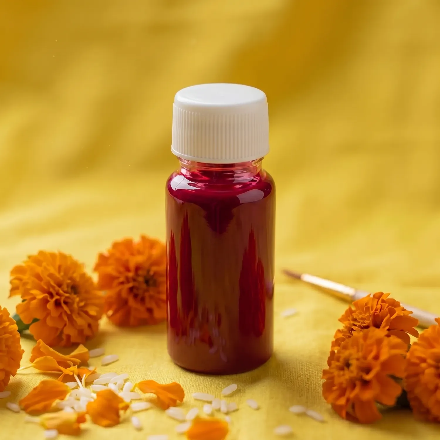 Material: Liquid red Alta, delivered in a convenient plastic bottle. Suitable for Puja offering.