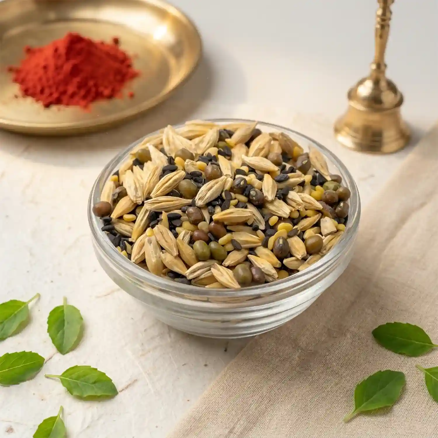Nava Dhanya is the collection of nine specific sacred seeds and pulses, utilised in Vedic astrology to honour the Navagrahas (the nine celestial bodies). Each distinct grain is associated with a particular astrological planet.
