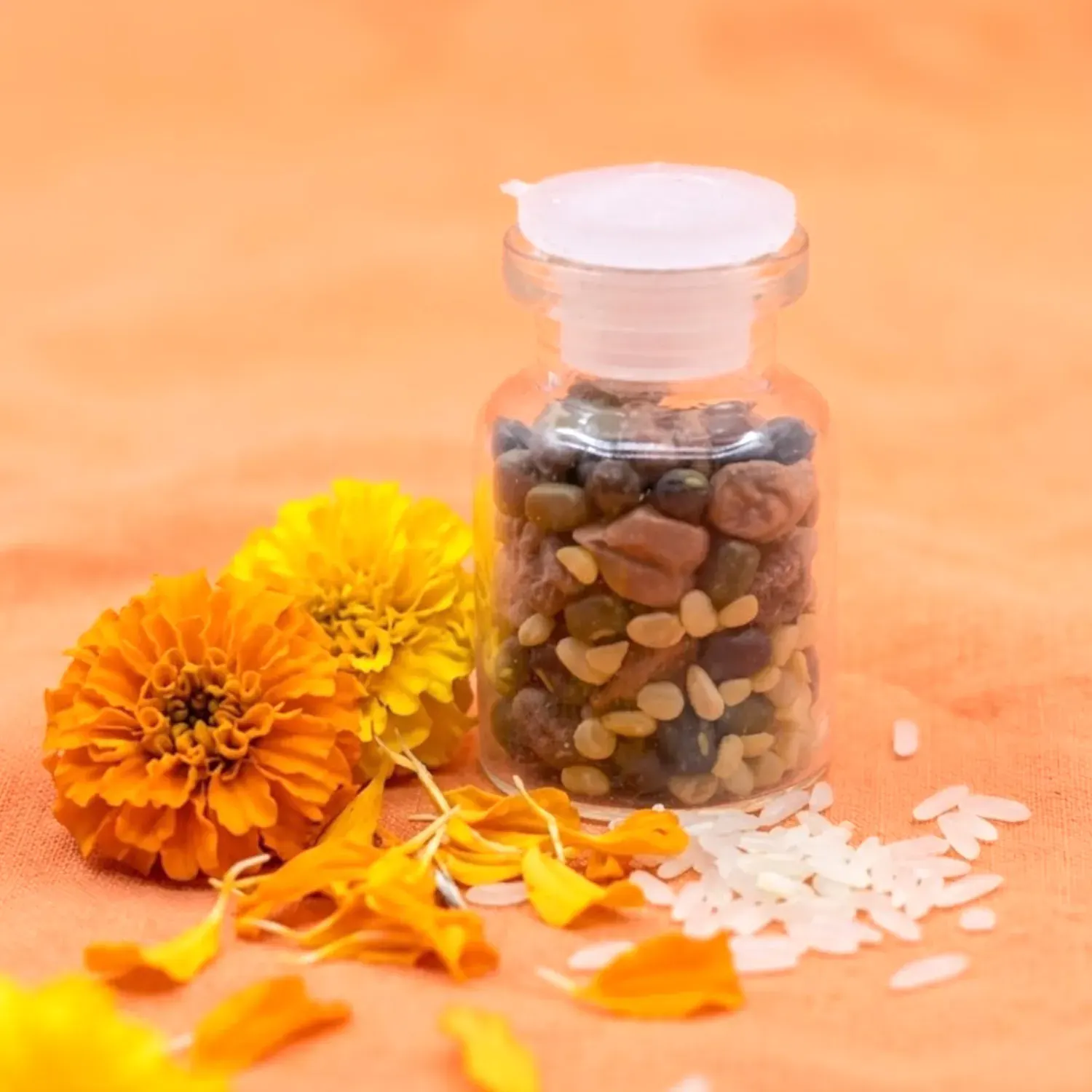 Sapta Dhanya is a profoundly sacred blend of seven distinct, whole grains. Together they symbolise abundance, prosperity, and cosmic balance.
