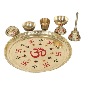 Set content: 5Pcs Pooja essentials Type: Pooja Thali Set Color: Gold Material: Brass