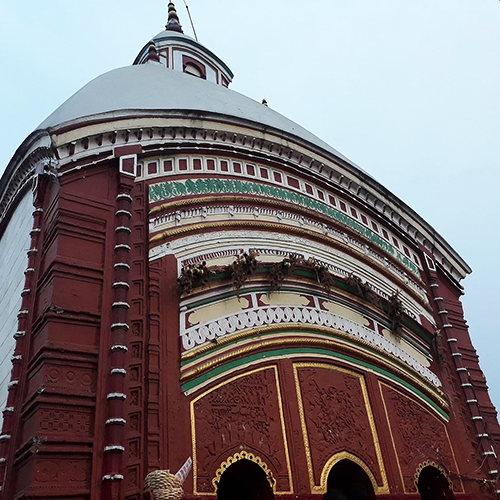 Situated on the banks of the River Dwarka, Tarapith Mahasmashan is the most important spiritual site in the Rampurhat subdivision of Birbhum. The Tara Tantra and the Rudrayamala Tantra narrate the story of Sage Vashishthaβs unsuccessful attempt to attain Siddhi at this site. After thousands of years of fruitless penance, enraged Sage Vashishtha was about to curse this peetha. However, Goddess Tara intervened and commanded him to visit Tibet to learn the Vamachara path for Tara Siddhi. It is said that Sage Vashishtha learned the ideal methods of worshipping Goddess Tara from Lord Vishnu (in his Buddha Avatar) and ultimately attained Siddhi at this very site. This holy land is also famously associated with the life of Saint Bama Khyapa, a revered and eccentric devotee of Maa Tara. Tarapith, as said already, is an ancient site, and the temple was built by different people at different times, such as Jay Datta, the king of Ratnakar, and King Ramjiban Ray. However, the current βAat Chalaβ style temple was erected by King Jagannatha Ray of Mallarpur around 1818-1819 CE (1225 Bangabda).