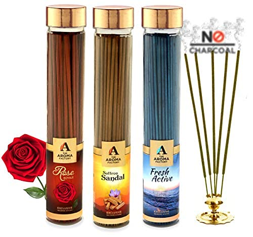 The Aroma Factory Rose Saffron Sandal & Fresh Active Agarbatti for Pooja